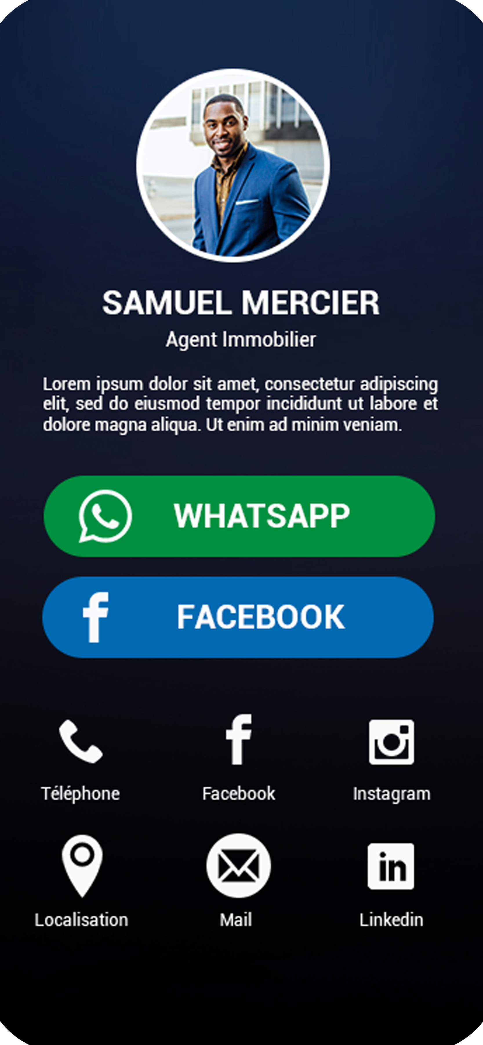 Oublier les cartes de visite papier et adopter la carte de visite digitale, unique et personnalisée à l’image de votre entreprise.